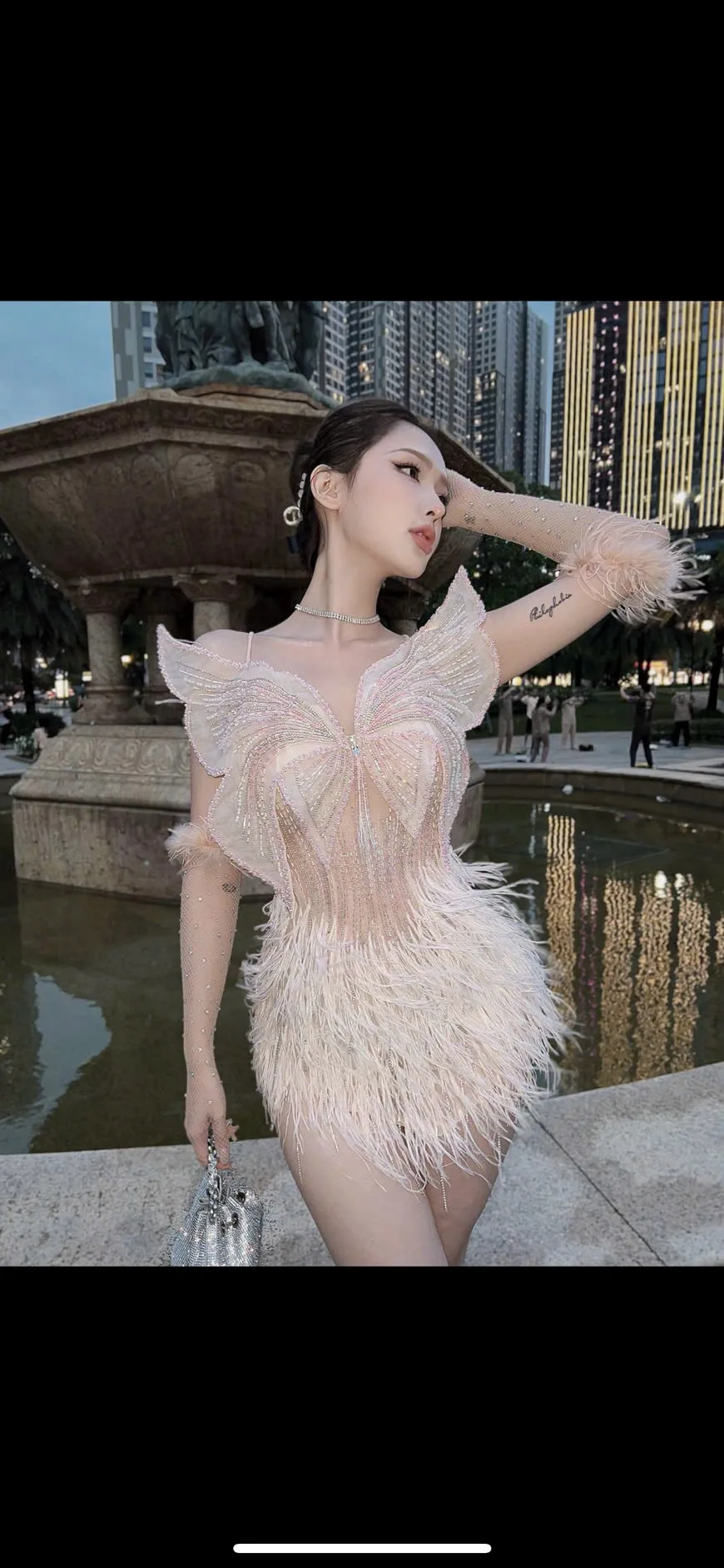 Đầm bướm lông vũ gợi cảm