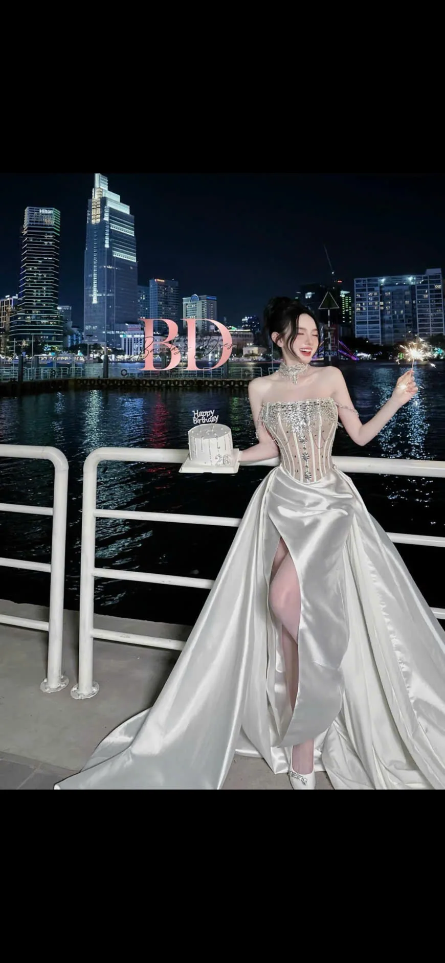 Đầm cúp ngực, xẻ tà dài