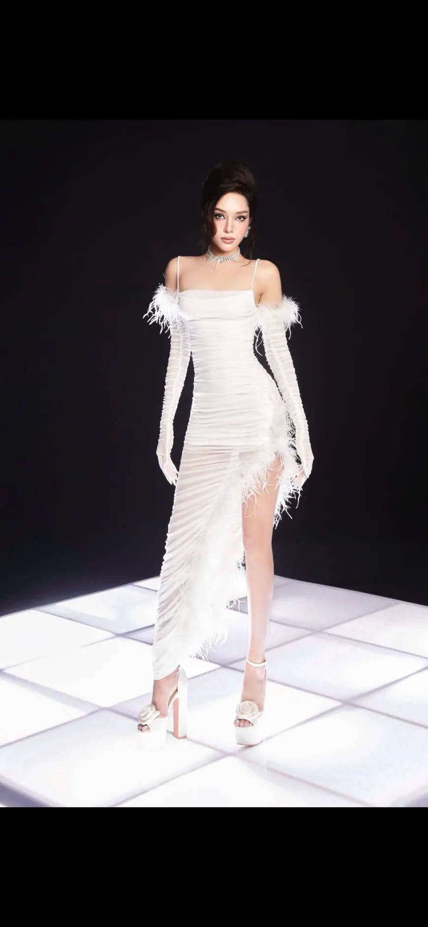 Đầm hai dây, có tay dài, ôm body