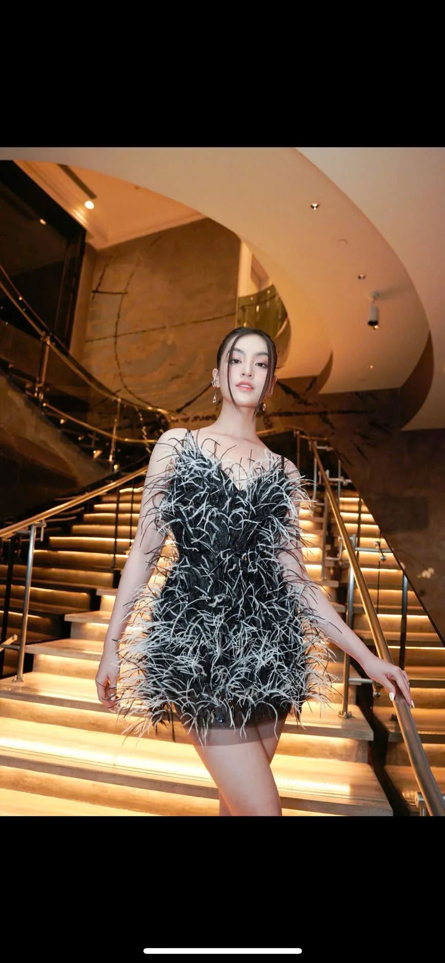 Đầm hai dây dạ hội ngắn có nhiều tua