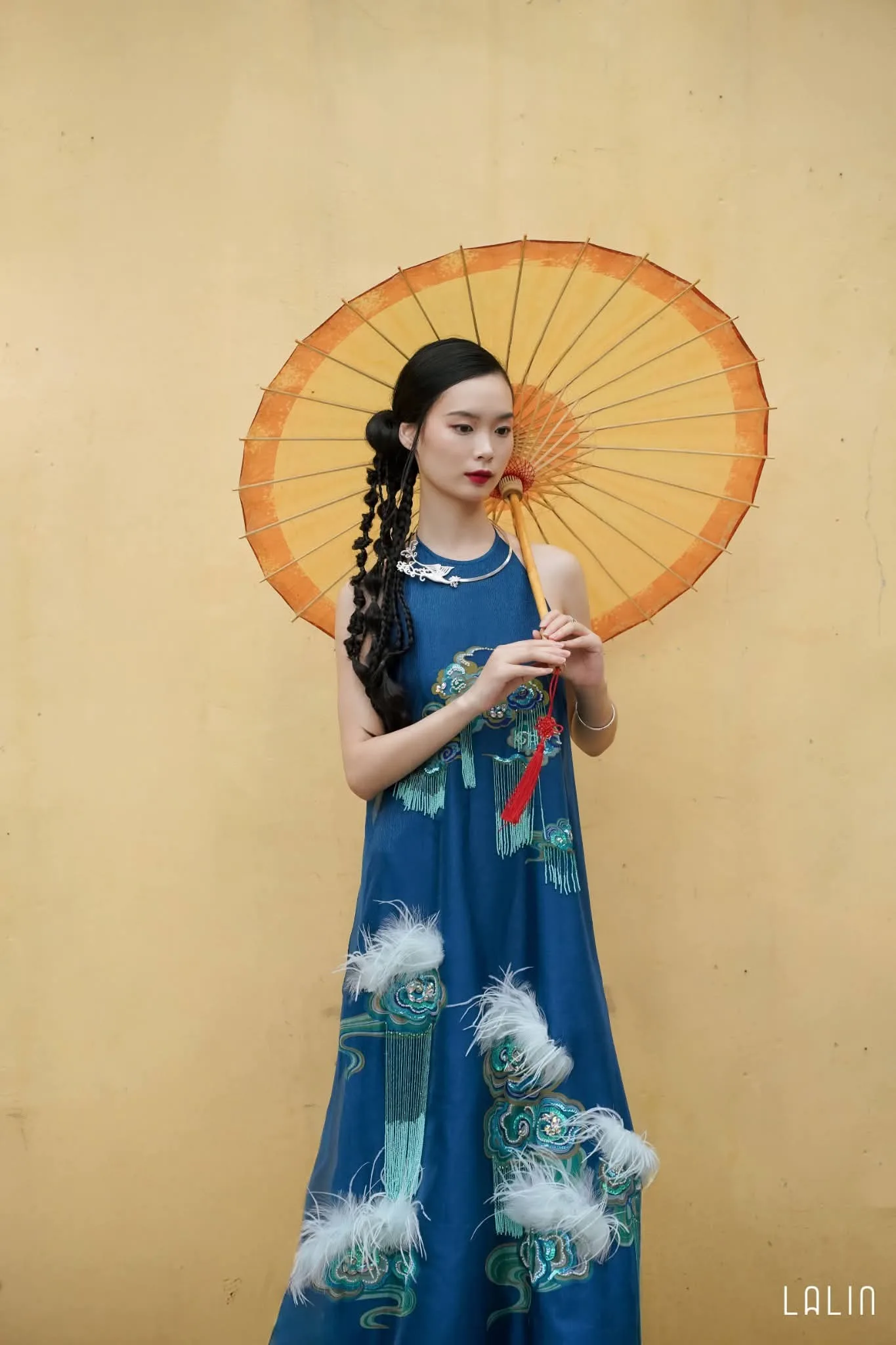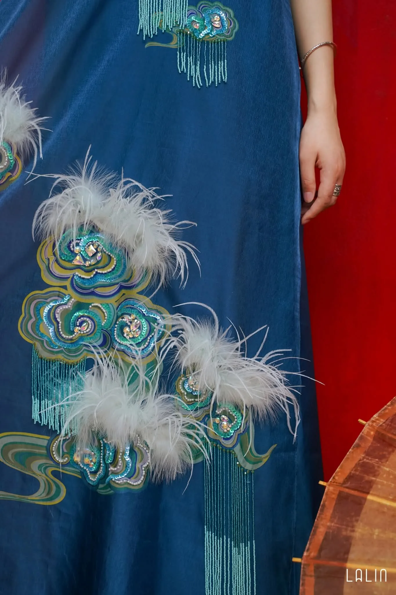 Đầm tơ đính kết Uyển Vân xanh