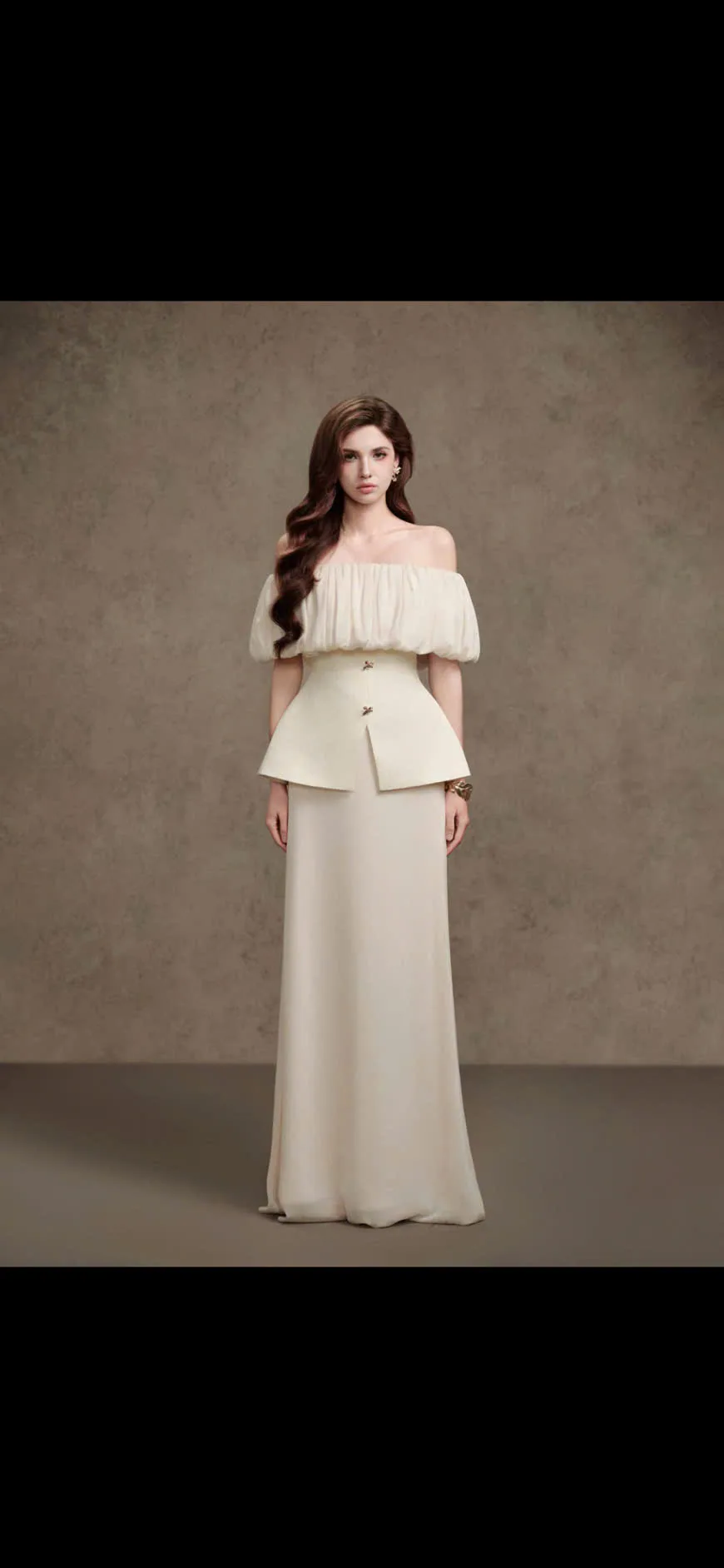 Set áo trễ vai và chân váy dài
