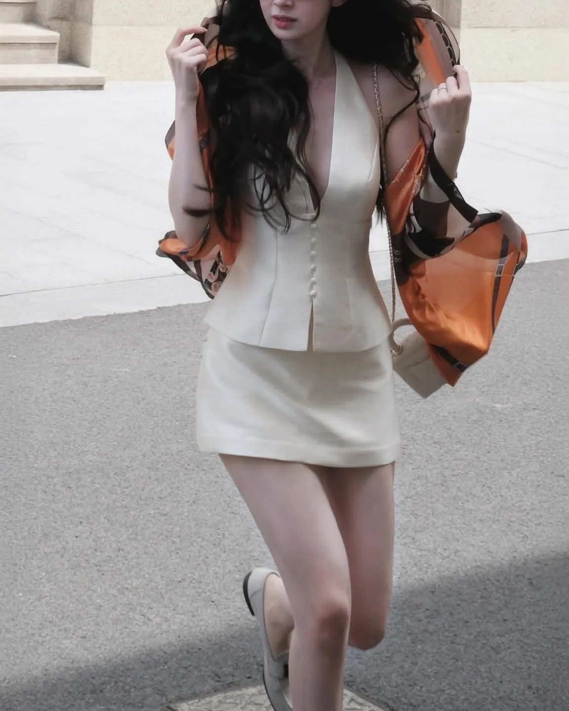Set đầm ngắn màu kem